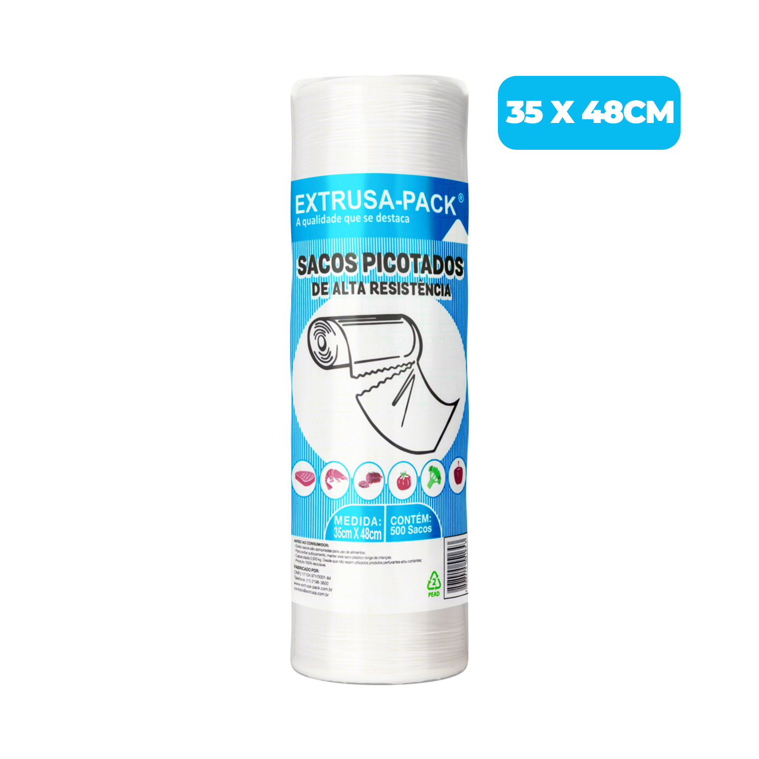 "A bobina picotada em rolo por unidade apresenta excelente qualidade, produzida com alta tecnologia e em diversos tamanhos. Foi desenvolvida por profissionais qualificados e devidamente treinados pela Extrusa Pack.