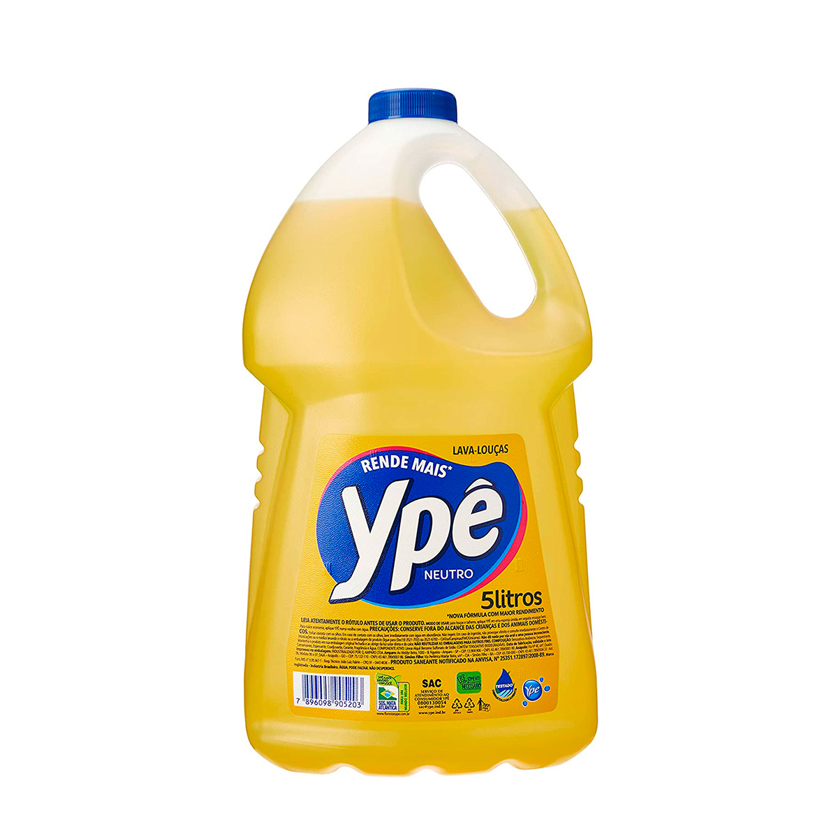 O Detergente Neutro Ypê 5L é líder de categoria por oferecer alto rendimento e eficiência na limpeza, garantindo a remoção completa de gorduras e sujeiras com economia real. Sua fórmula avançada combina tensoativos biodegradáveis que limpam profundamente sem agredir superfícies ou mãos, tornando o produto ideal para uso diário em cozinhas residenciais e comerciais. Com pH neutro e dermatologicamente testado, o detergente é seguro para todos os tipos de louças e utensílios, além de respeitar o meio ambiente. A embalagem de 5 litros garante praticidade e rendimento prolongado, evitando desperdício. | Benefícios | Alta eficiência de limpeza com rendimento superior. | Tensoativos biodegradáveis, limpos e seguros para o meio ambiente. | pH neutro e dermatologicamente testado, seguro para uso diário. | Economia real, removendo sujeiras sem desperdício de produto. | Versátil, indicado para louças, utensílios e superfícies laváveis. | Ideal Para | Louças, panelas, talheres e utensílios em geral. | Cozinhas residenciais e comerciais. | Uso diário com foco em eficiência, economia e segurança. | Dados Técnicos | Marca: Ypê | Produto: Detergente Neutro Líquido | Volume: 5 litros (01 galão) | Tamanho da embalagem: 35 x 18 x 12 cm | Cor: Amarelo | Fragrância: Neutra | Composição: Tensoativos biodegradáveis, agentes de limpeza e conservantes | Código:-292