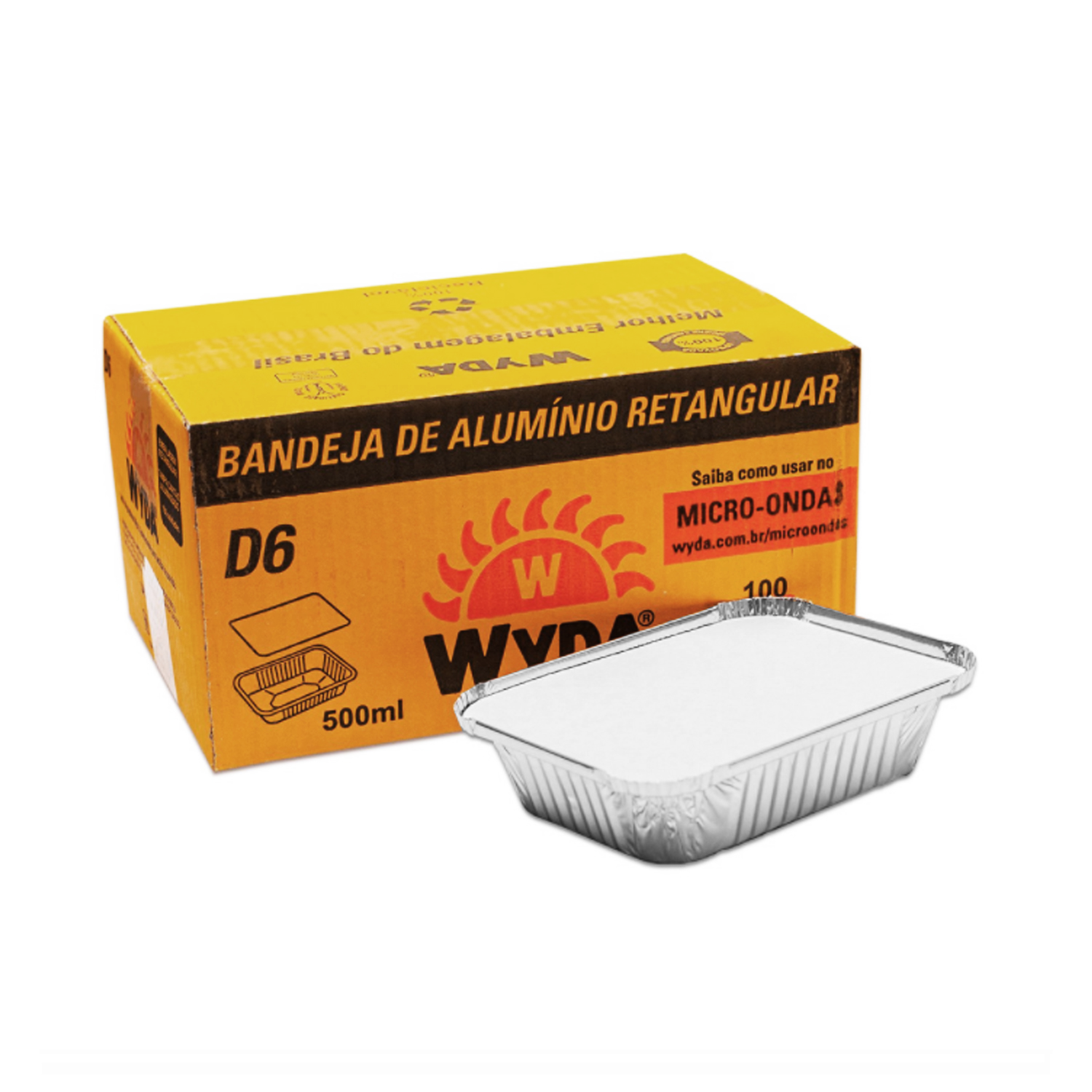 Embalagem Alumínio Retangular 500mL D6 Fechamento Manual com Tampa 100 unidades - Wyda