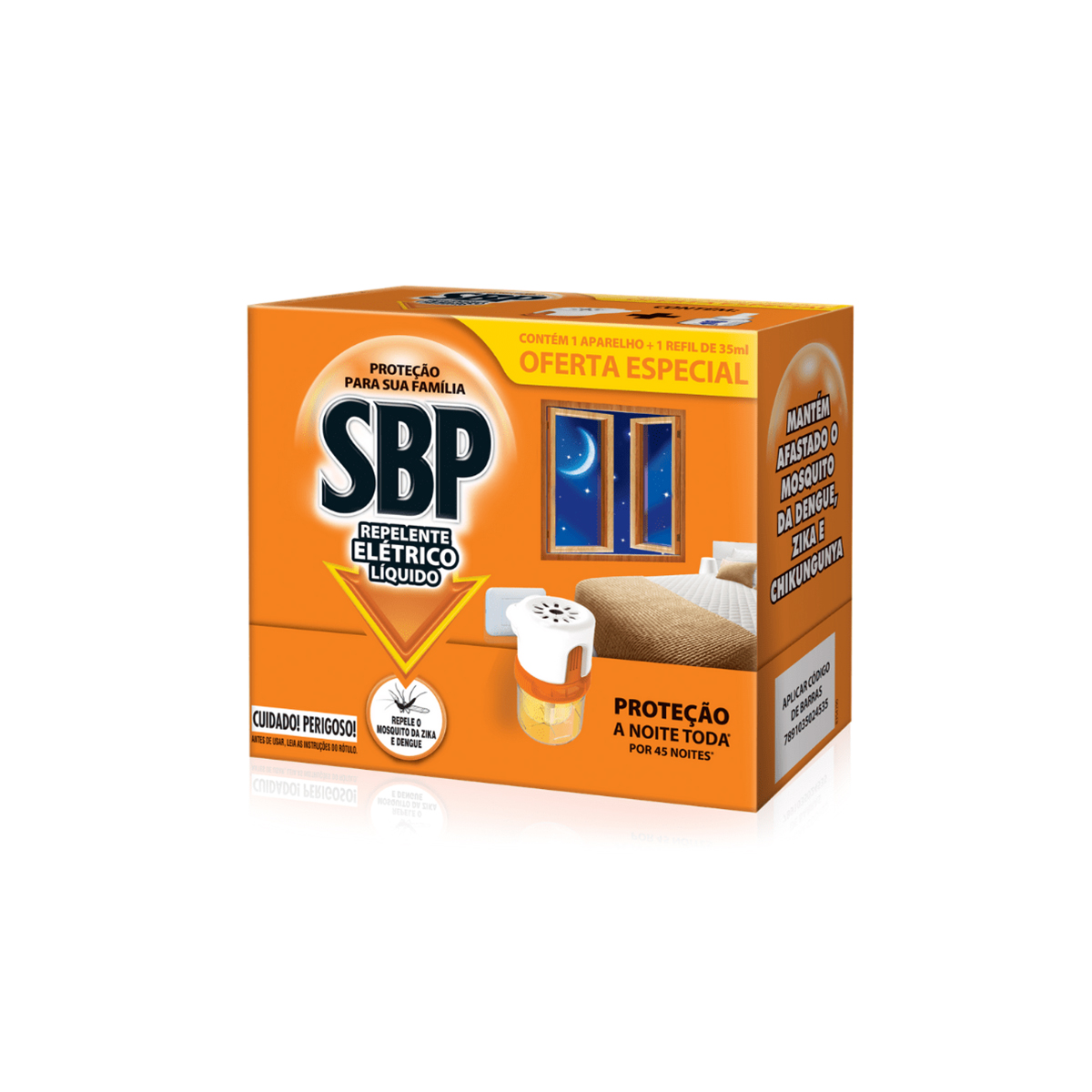 "A linha SBP Repelente Elétrico Líquido proporciona proteção contínua e noites tranquilas para você e sua família. Mantém afastados pernilongos e mosquitos, incluindo o da Dengue, Zika e Chikungunya, durante 8 horas, por até 45 noites.